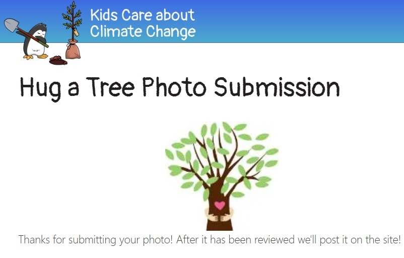 WELCOME to the #kidscareaboutclimatechange GLOBAL TREE HUG CHALLENGE!! What’s it all about? Listen to me talk about it on the radio (starting at 00:21:0) or watch this short 2 min video. Or watch a longer podcast interview.