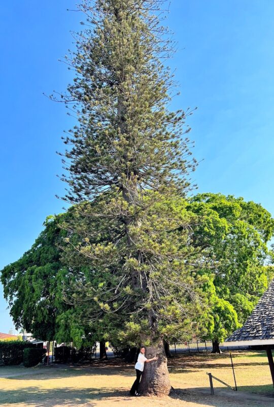 The tree in this photo is a Cook Pine [Araucaria columellaris] that was planted in the 1880s!! Scroll down to see the full-sized photo so you can see how tall it is!!