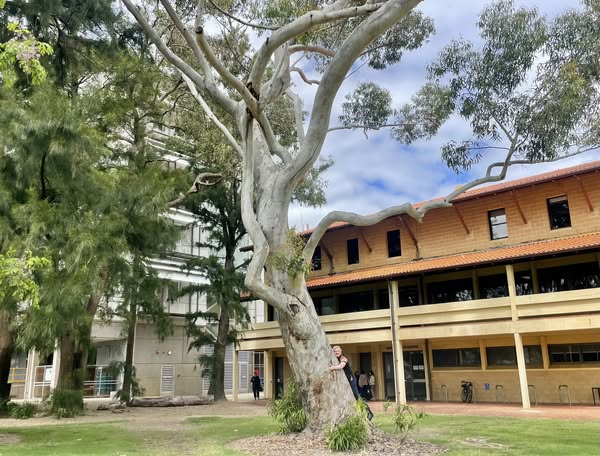 Trees are cool. They convert carbon dioxide into carbon, and then provide us with shade and cooling and habitat. And I think they are neat. Scroll down to see the entire GIANT tree Darren was hugging at the University of Western Australia in Perth!!