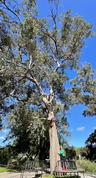 Bec is hugging a tree in Kings Park, Perth. Scroll down to see how MASSIVE the tree is that she is hugging.