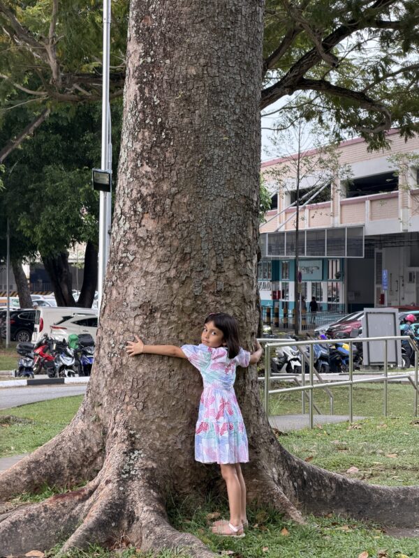 they give us yummy fruit to eat, shade to play under when it’s sunny, and they make the air fresh and and give oxygen for everyone to breath.