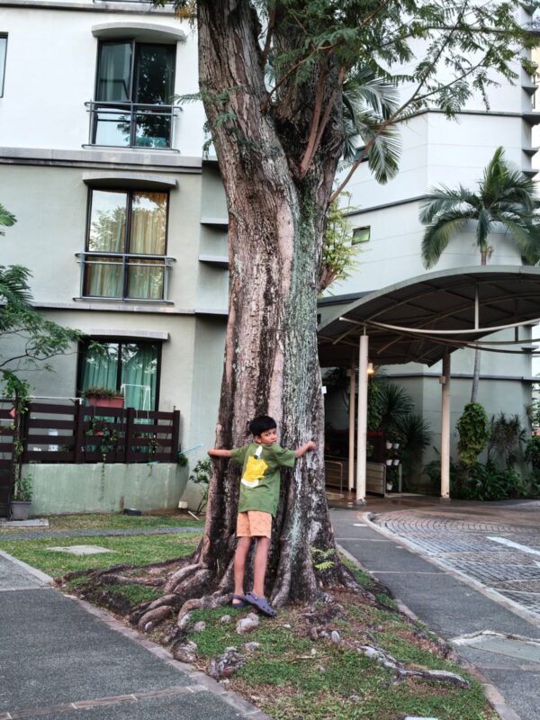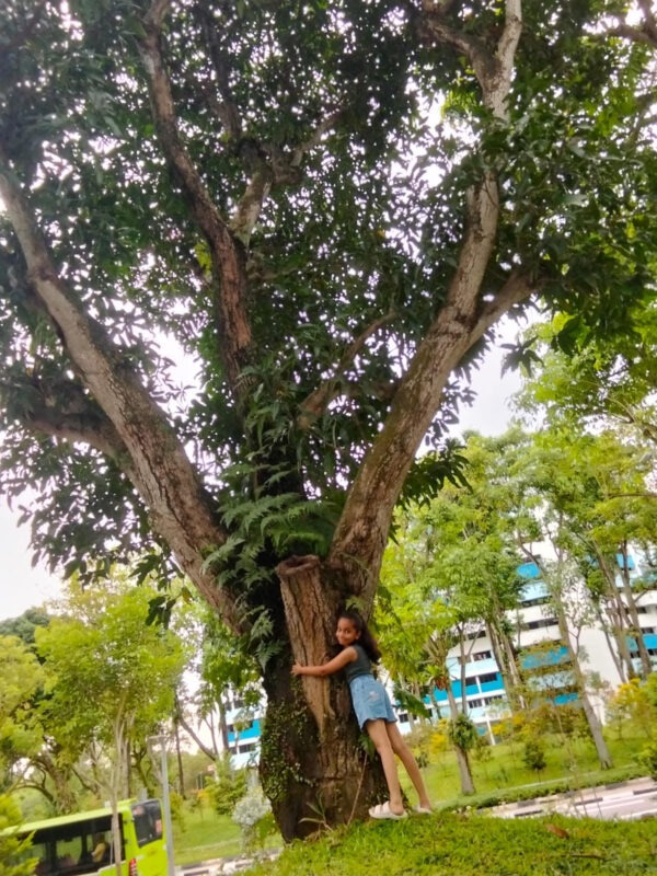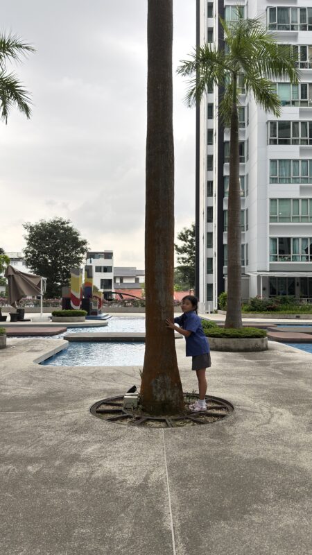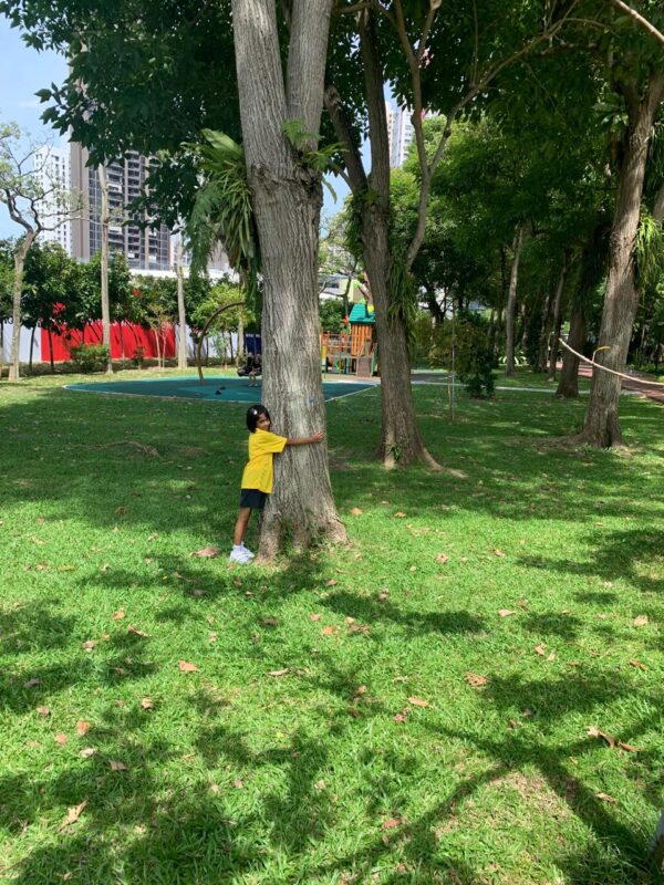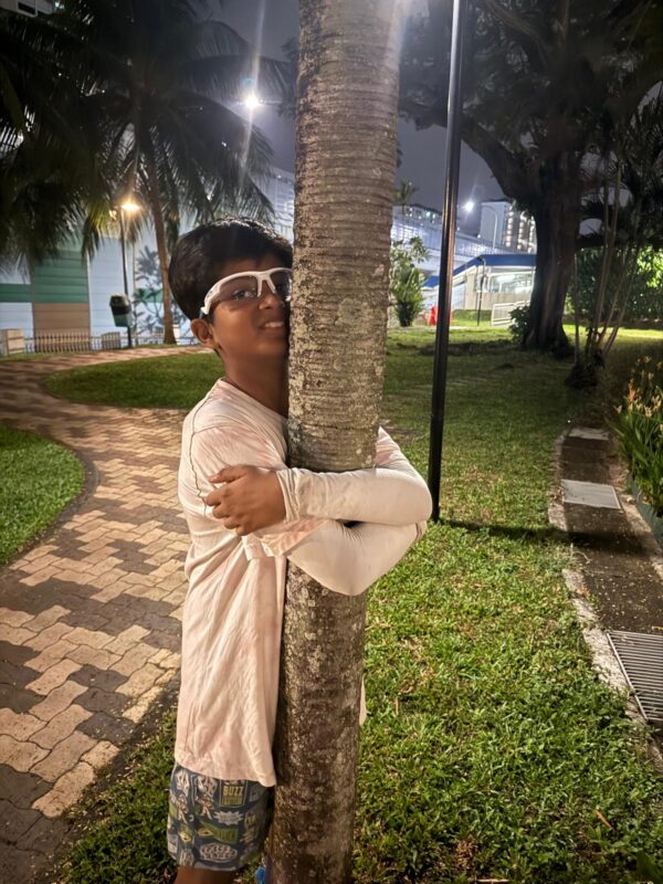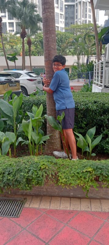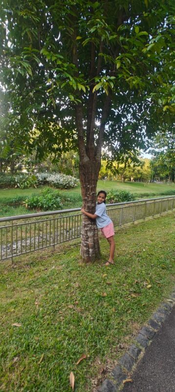 I hugged this palm tree for one minute. I felt relaxed and happy and I thought about being part of the world record attempt. I love trees because they are pretty and give us oxygen.