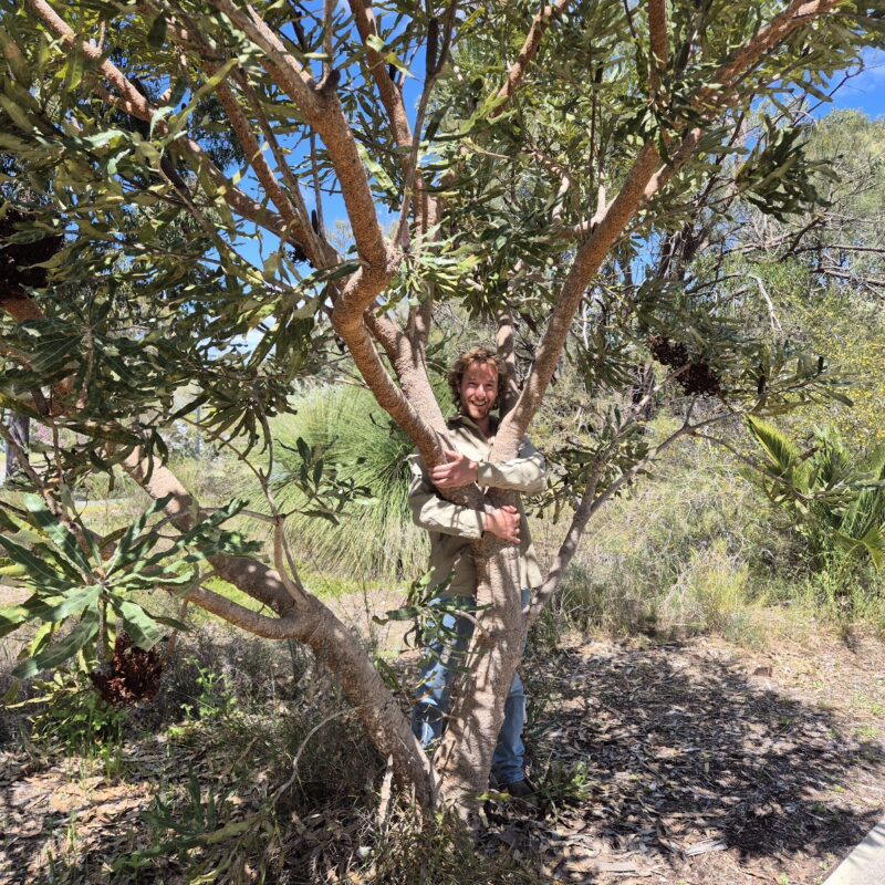 Trees are cool. They convert carbon dioxide into carbon, and then provide us with shade and cooling and habitat. And I think they are neat. Scroll down to see the entire GIANT tree Darren was hugging at the University of Western Australia in Perth!!