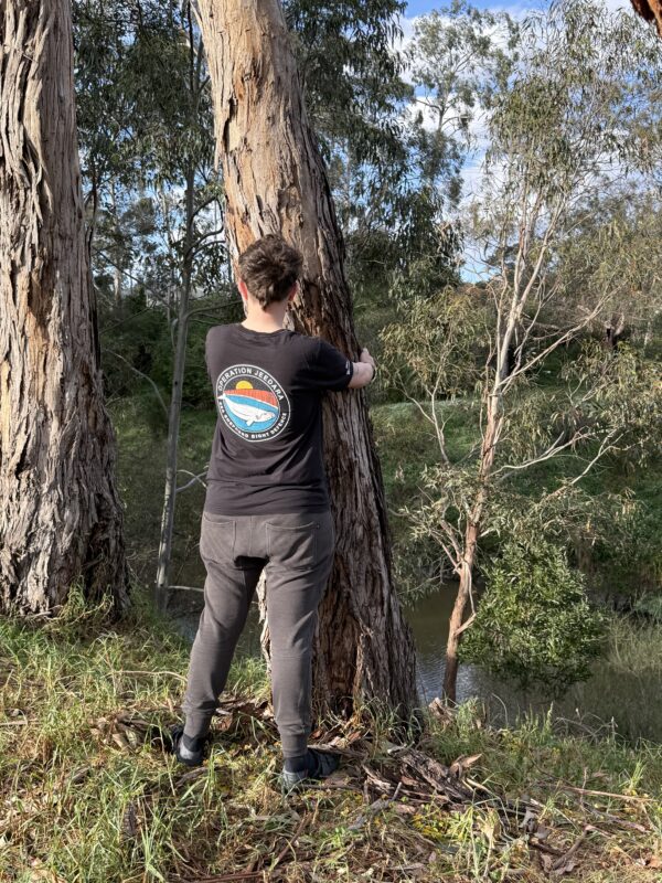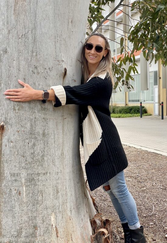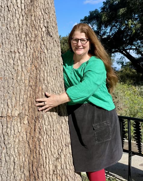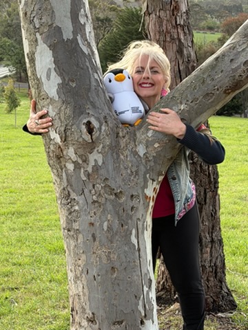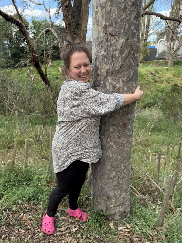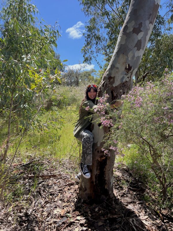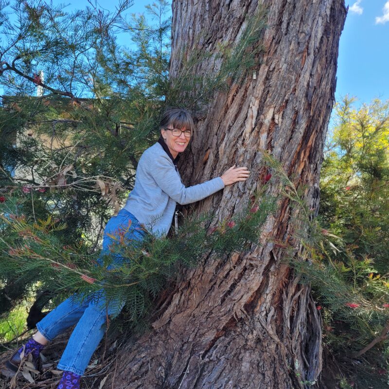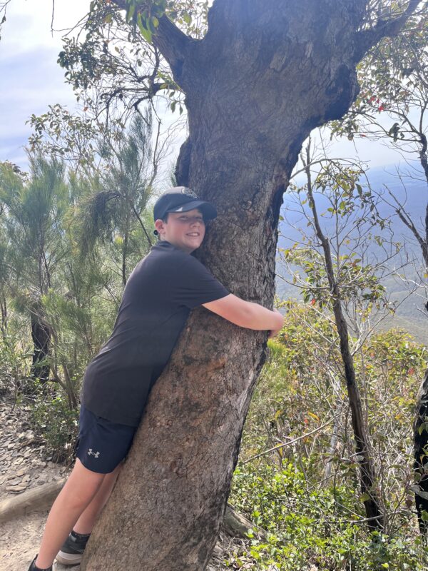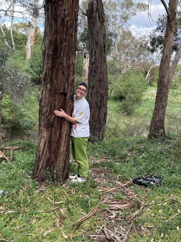 I love trees because they are bit like the fur on our planet. They are green, they breathe, and they cover us, and they are wonderful. Bec is hugging a tree in Kings Park, Perth. Scroll down to see how MASSIVE the tree is that she is hugging.