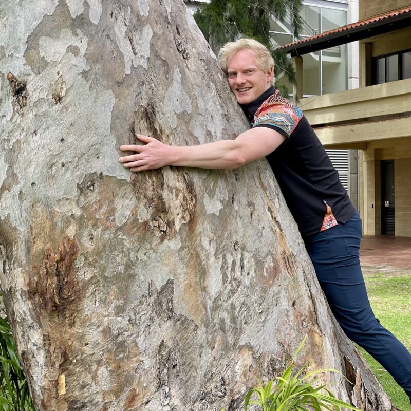 I love that I can climb them! Scroll down to see how absolutely HUGE the tree is that Kay is hugging on the campus of University of Western Australia.