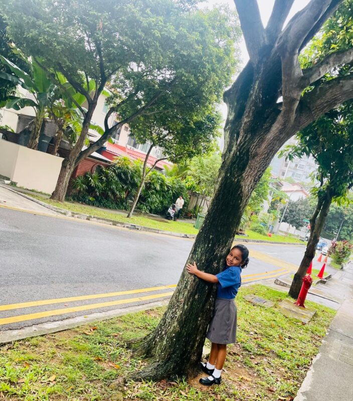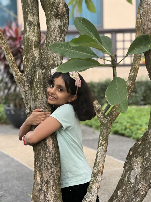 they give us yummy fruit to eat, shade to play under when it’s sunny, and they make the air fresh and and give oxygen for everyone to breath.