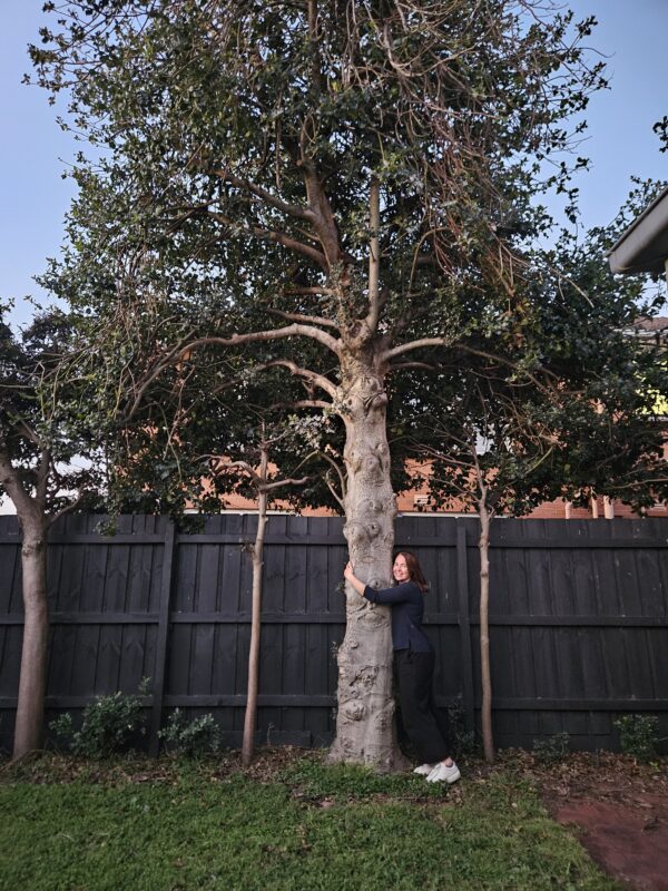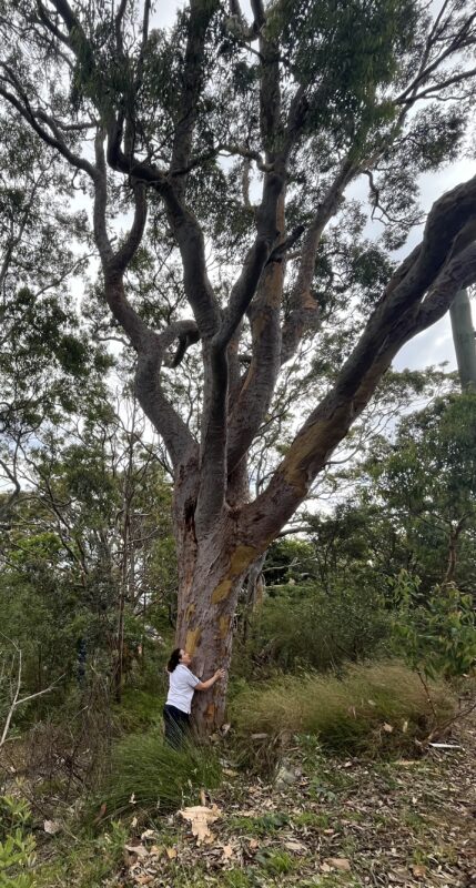 I hugged this gum tree (Eucalyptus) for one minute. Hugging the tree made me feel good because it felt nice. I saw ants 🐜 !
