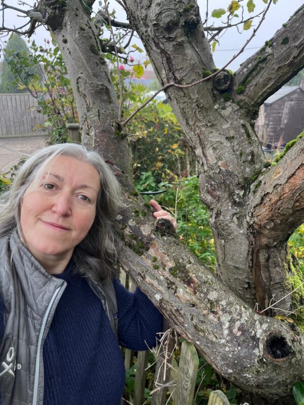Here is my lovely apple tree, some pink roses in the background brightening up autumn and an HB logo sneaking in!! Xxx