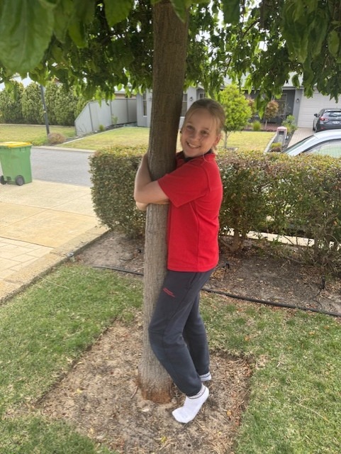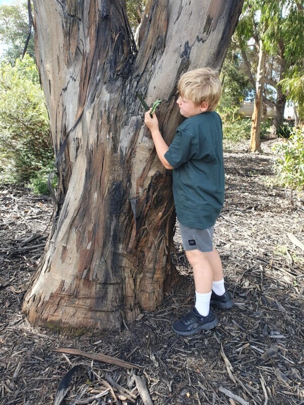 I hugged this peppermint tree for 3 minutes, and it make me feel happy. I wondered how high I could climb up it. I love trees because they give us shade on a hot summer’s day (William) and because the fairies need homes (Summer).