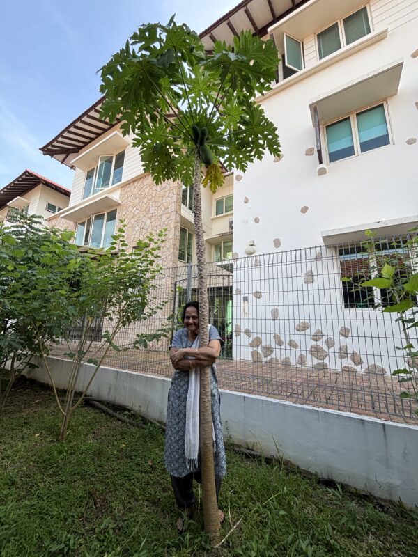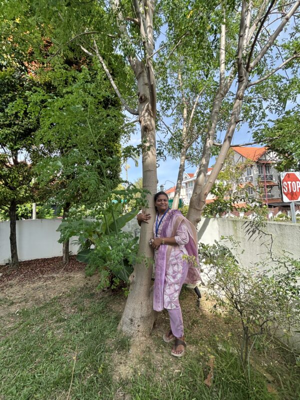 I hugged this palm tree for one minute. I felt relaxed and happy and I thought about being part of the world record attempt. I love trees because they are pretty and give us oxygen.